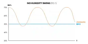 Super stabiele luchtvochtigheid. Met de RevomaxII zal de luchtvochtigheid binnen ± 4% RV van het setpoint zijn (fig 1). Ter vergelijking: met de Opticlimate PRO4 zal de luchtvochtigheid 20% schommelen en normale airconditioners kunnen de luchtvochtigheid niet eens regelen!