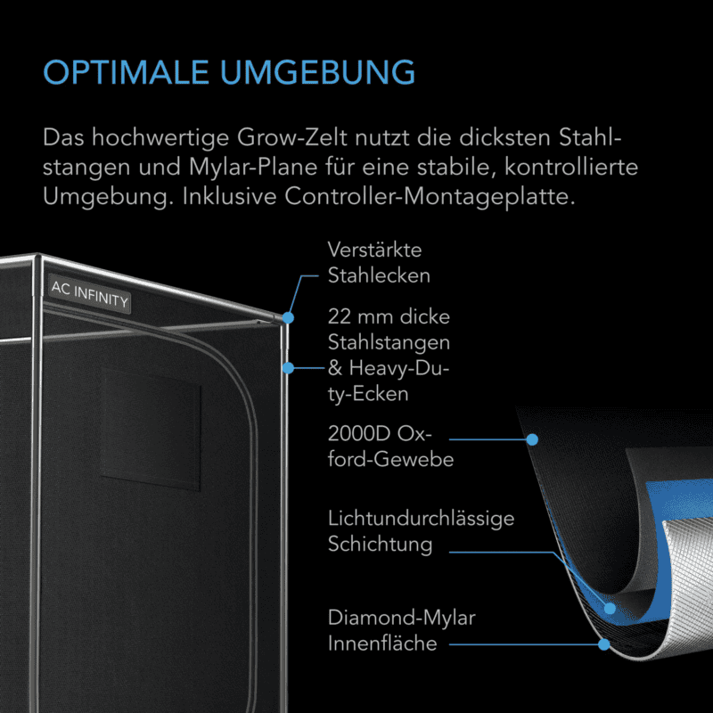 Het AC Infinity kweektentsysteem 90 x 90 x 180 cm is een volledig geïntegreerd en slim growpakket waarmee je direct professioneel kunt starten. Alle essentiële onderdelen zijn inbegrepen: ventilatie, filtering, LED-verlichting, tent, controller en accessoires. Dankzij de intelligente klimaatsturing, stille EC-techniek en premium materialen creëert dit systeem een perfect gecontroleerde kweekomgeving voor drie planten.
