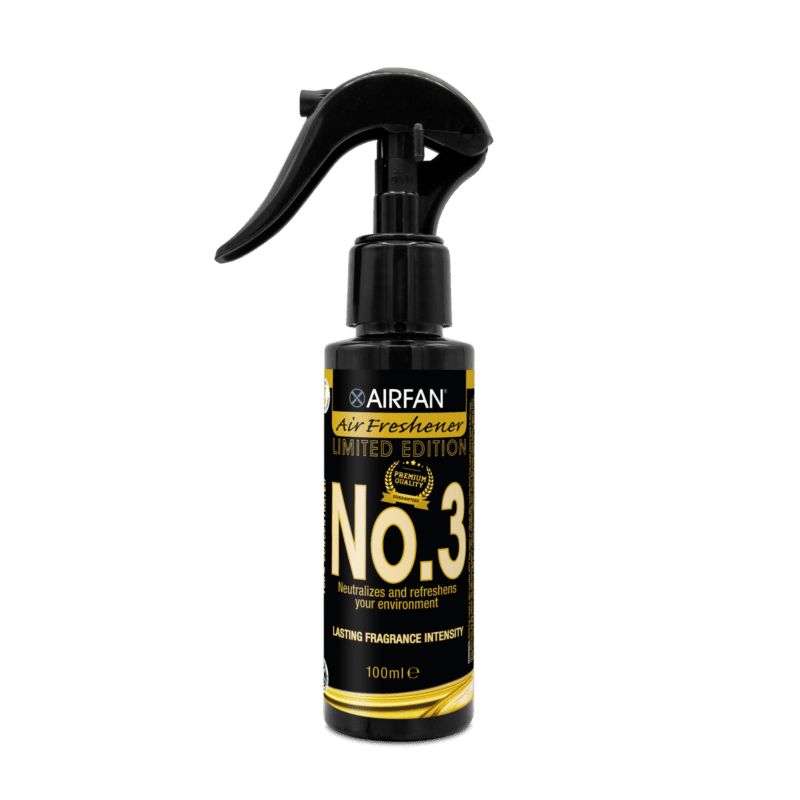 AirfanAirfan Geurolie No.3 100 ml brengt tijdloze elegantie in elke ruimte. Deze 100% geconcentreerde parfumolie neutraliseert ongewenste geuren en verspreidt een luxe, frisse geur die langdurig blijft hangen – perfect voor huis, kantoor of auto.