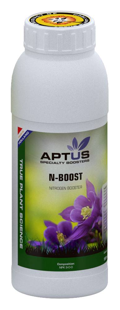 Planten hebben in de groeifase een grote behoefte aan stikstof. Dit product van Aptus bevat organische stikstof en linksdraaiende aminozuren van hoge kwaliteit. Het product is volledig wateroplosbaar en laat geen residuen achter. N-Boost is een organisch product dat uitblinkt door de opneembaarheid van de groeibevorderende actieve stoffen, hierdoor heeft het een krachtig stimulerend effect op het groeiproces en stimuleert tevens het bodemleven. Met dit product haal je in de groeifase een optimale opbrengst zonder risico van verstoppingen in het sproei- of druppelsysteem.