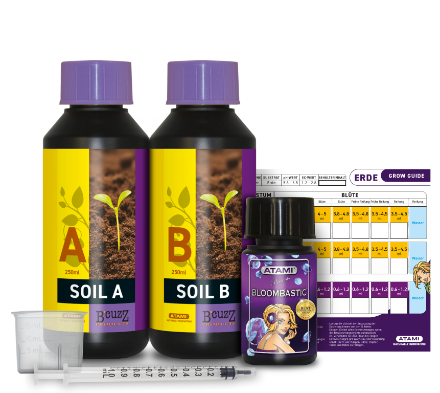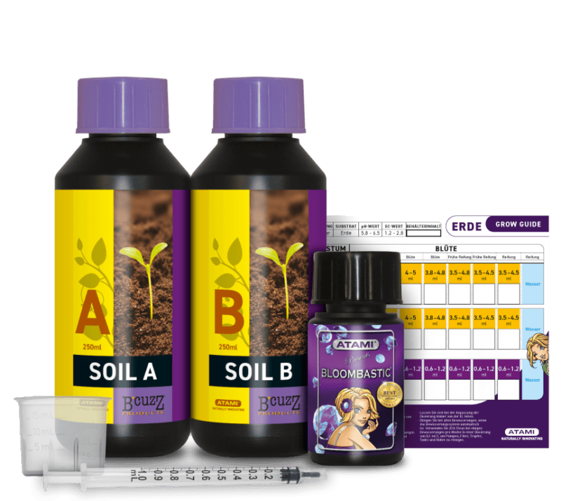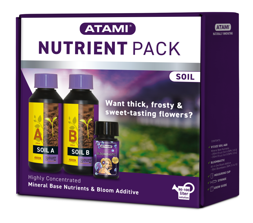 AtamiComplete voedingsset van Atami voor groei en bloei. Bevat B’cuzz Soil A & B en Bloombastic. Ideaal voor planten in aarde. Eenvoudig in gebruik, hoog geconcentreerd en geschikt voor elke fase van de teelt.