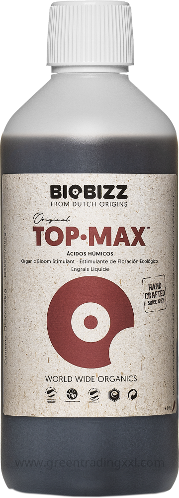 Biobizz TopMax is een volledig biologische, 100% plantaardige bloeistimulator die speciaal ontwikkeld is om de bloeifase van planten naar een hoger niveau te tillen. Deze krachtige formule stimuleert de aanmaak van bloemcellen en bevordert de productie en het transport van suikermoleculen naar de bloemen. Dit resulteert uiteindelijk in grotere vruchten en een zachte, zoete smaak van het eindproduct.