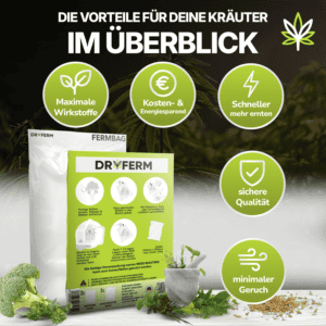 DryFerm zakken zijn een uitstekend alternatief voor plastic zakken. Ze zijn eenvoudig te vullen, af te sluiten en opnieuw te gebruiken. Perfect voor growers die waarde hechten aan kwaliteit, duurzaamheid en behoud van smaak en geur.