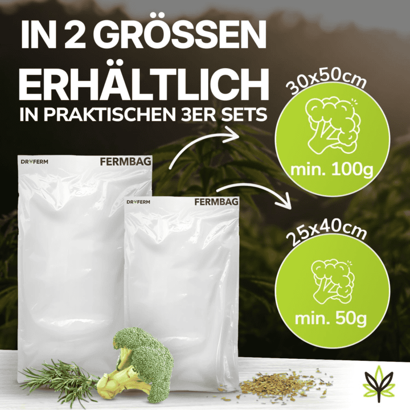 De DryFerm Bag van 30 cm x 50 cm is ideaal voor het drogen en bewaren van grotere hoeveelheden kruiden, bloemen of ander plantenmateriaal. Elke zak is geschikt voor een inhoud tot 100 gram en wordt geleverd in een set van 3 stuks.