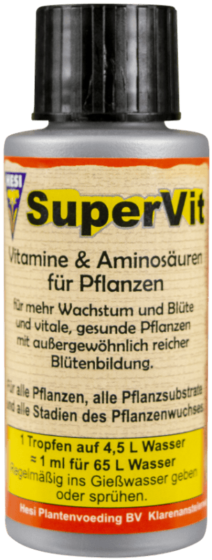 HesiHesi SuperVit is een hoog geconcentreerde mix van vitaminen en aminozuren die de stofwisseling en de algehele gezondheid van de plant verbeteren.