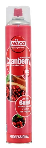 Nilco Powerfresh Cranberry 750 ml is een veelzijdige luchtverfrisser die hardnekkige geuren effectief bestrijdt, met een verkwikkende cranberrygeur voor langdurige frisheid in diverse omgevingen, aangeboden in een handige sprayflacon.