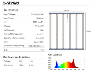 • Geavanceerde LED Technologie: De Platinum King LED maakt gebruik van de nieuwste LED-technologie, waardoor telers kunnen profiteren van een uitzonderlijk hoge lichtopbrengst en efficiëntie. Met een PPF-lichtopbrengst van 2131 μmol/s en een efficiëntie van 2.9 μmol/J, biedt deze LED-lamp de perfecte hoeveelheid licht voor optimale groei en maximale opbrengst.