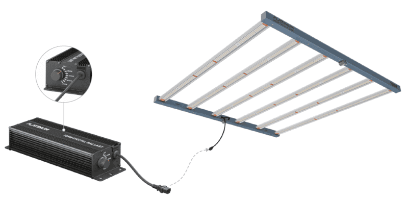 • Flexibele Installatie: Dit systeem is ontworpen zonder geïntegreerde ballast of driver, wat betekent dat u de ballast naar wens kunt monteren, zelfs tot op een afstand van 10 meter. Dit helpt om de warmteafgifte van de ballast buiten de groeiruimte te houden, wat een betere controle van de teeltomgeving mogelijk maakt zonder dat u de ruimte hoeft te betreden.
