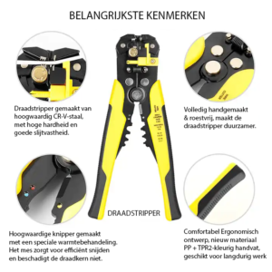 - Schadenfreies Drahtschneiden: Unser Drahtabstreifer ist mit einem hochwertigen Schneidsystem ausgestattet, das Drähte schnell und präzise durchschneidet, ohne den Drahtkern zu beschädigen. Dies gewährleistet optimale Leistung Ihrer elektrischen Verbindungen.