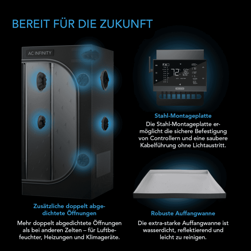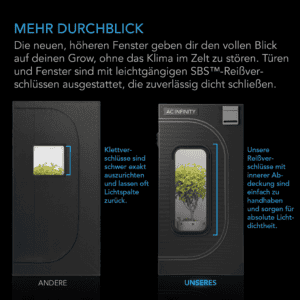 Das AC Infinity CLOUDLAB 844 kombiniert höchste Materialqualität, technische Präzision und professionelle Ausstattung – ideal für Grower, die eine stabile, lichtdichte und leistungsstarke Umgebung für ihre Pflanzen benötigen.