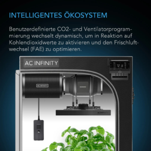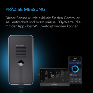 In Kombination mit der AC Infinity App und dem AI-Controller sorgt dieser Sensor dafür, dass Pflanzen immer die richtige Menge CO2 und Frischluft erhalten, genau abgestimmt auf den Lichtplan und die aktuellen Bedingungen.