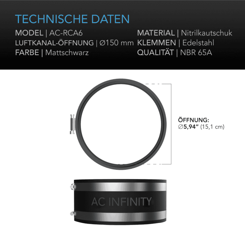AC Infinity geräuschreduzierende Verbindungsmanschette 150 mm mit Edelstahlklemmen