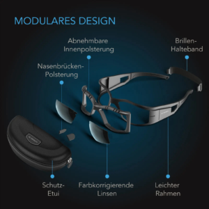 Diese Brille verfügt über einen leichten, umschließenden Rahmen, der vollständige Abdeckung bietet. Die weiche, abnehmbare EVA-Schaumstoffpolsterung sorgt für zusätzlichen Komfort und schließt gut am Gesicht ab, sodass störendes Außenlicht blockiert wird. Mit einem Gewicht von nur 35 g kannst du problemlos längere Zeit ohne Druck oder Unbehagen arbeiten.