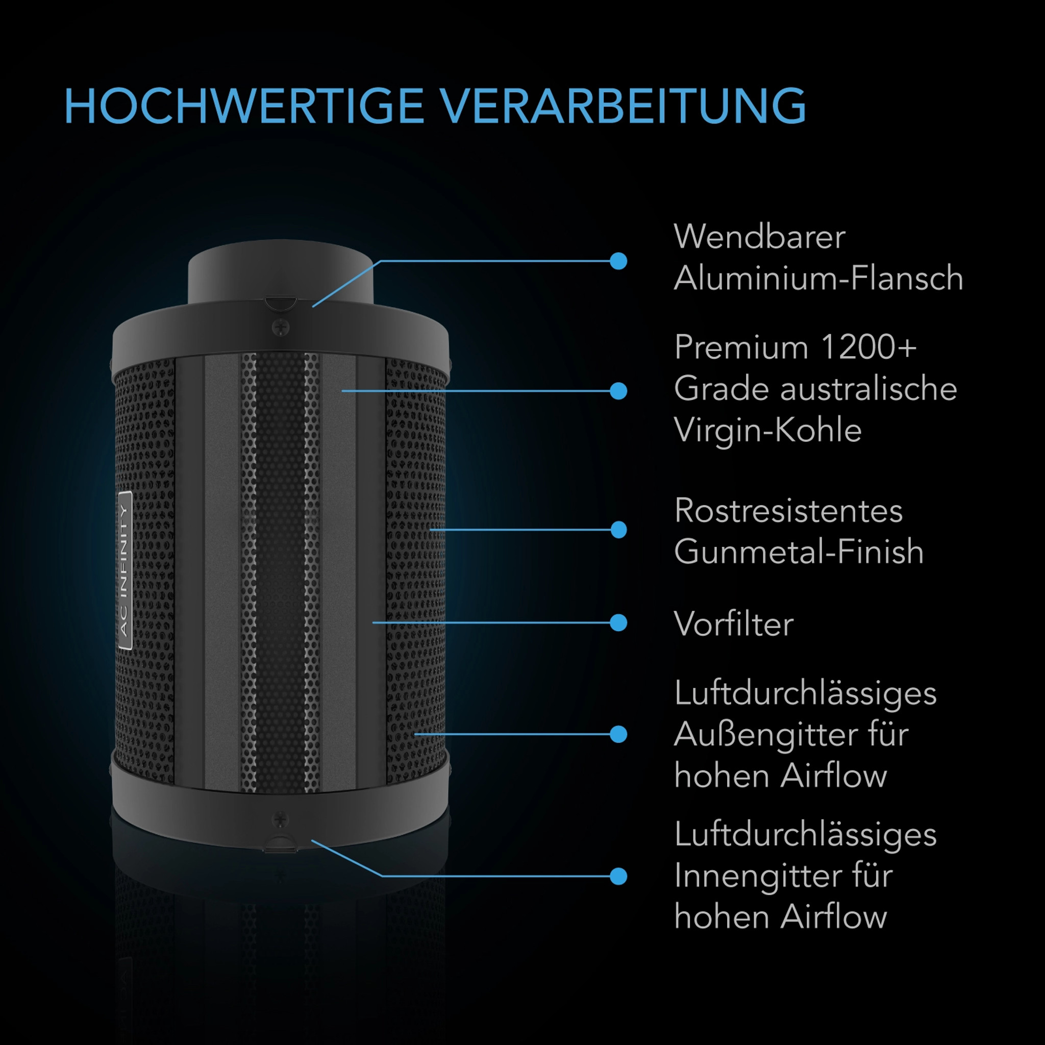 Dieses AC Infinity 150 mm Luftfilterset bietet hervorragende Leistung in Luftzirkulation und Geruchsfilterung und ist ideal für anspruchsvolle Indoor-Grower, die Wert auf Effizienz, Langlebigkeit und leisen Betrieb legen.