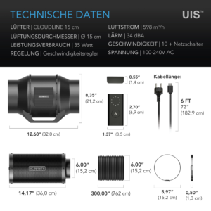 CLOUDLINE LITE Inline-Rohrventilator 150 mm mit 10-Stufen-Controller