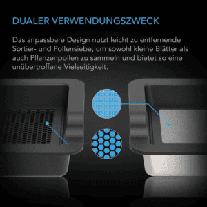 Die Kombination aus hochwandigem Trim-Tablett, feinmaschigem Sieb und stabilem Sortierschirm macht dieses System ideal für die Verarbeitung umfangreicher Erntemengen. Es eignet sich perfekt zum Trennen, Sortieren und Sammeln von Kräutern, Blüten, Blättern und Pollen. Auch Anwendungen wie Aromatherapie, Potpourri oder die Herstellung von Kräuterextrakten lassen sich damit optimal vorbereiten.