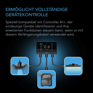 Mit der zusätzlichen Länge von 300 cm kannst du Geräte deutlich flexibler platzieren – ideal für größere Growzelte, Regal-Setups oder mehrstöckige Anlagen. Das Kabel unterstützt alle erweiterten UIS-Funktionen wie Oszillationssteuerung, Lichtdimmung, Klimaauslöser, Timer und programmierbare Zeitpläne.