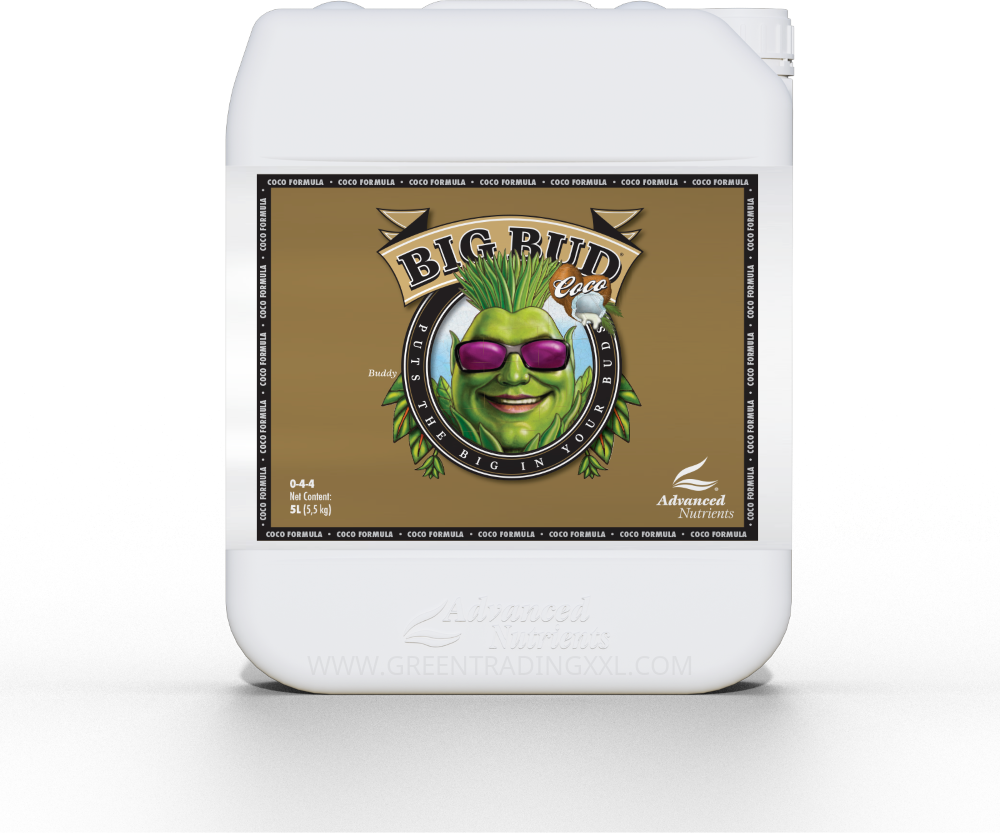 Advanced NutrientsAdvanced Nutrients Big Bud Coco 5 l ist ein Blütebooster für Pflanzen auf Kokossubstrat, der für größere, schwerere und aromatischere Blüten und Früchte während der Blütephase sorgt.