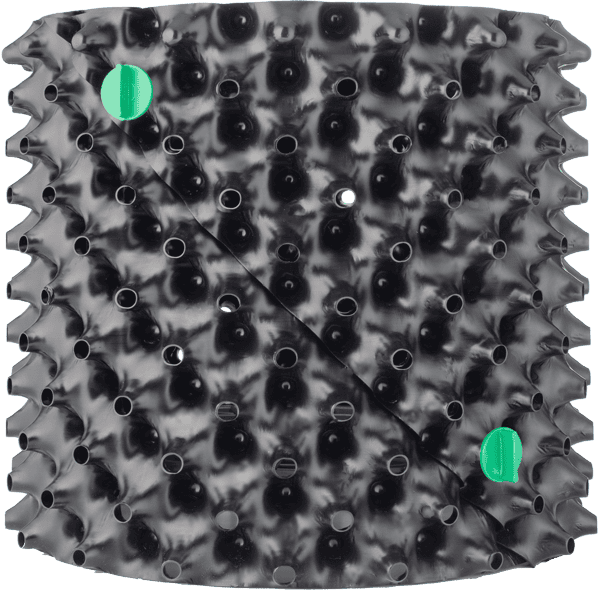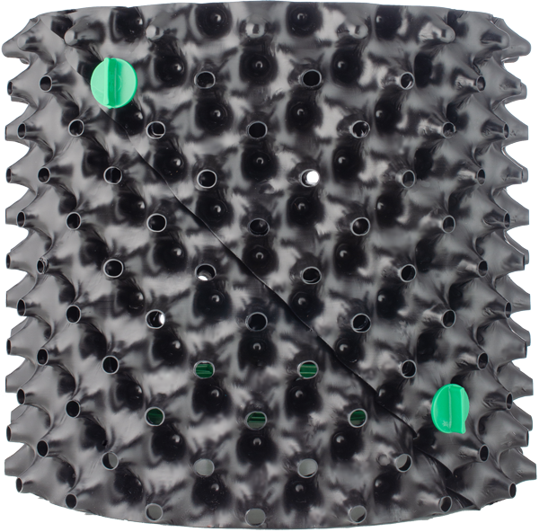 Die konischen Noppen leiten jede Wurzel gezielt zu einer Luftöffnung. Sobald die Wurzelspitze dort austrocknet, bildet die Pflanze automatisch neue Seitenwurzeln. Dieser natürliche Luftschnitt sorgt für eine dichte und sehr aktive Wurzelmasse, die herkömmliche Töpfe deutlich übertrifft.