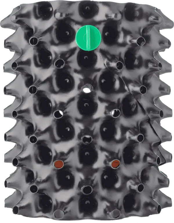 Die speziell geformten Wände leiten jede Wurzel automatisch zu einer Luftöffnung. Sobald die Wurzelspitze dort austrocknet, bildet die Pflanze mehrere neue Seitenwurzeln. Dieses Luftschnittverfahren erzeugt eine kompakte, leistungsfähige Wurzelmasse, die Wasser und Nährstoffe besonders effizient aufnehmen kann.