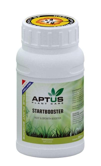 Verwenden Sie Aptus Startbooster als Ergänzung zur NPK-Düngung. Auf vorgedüngter Erde ist durch den Einsatz von Startbooster keine zusätzliche Wachstumsdüngung erforderlich. Die Wachstumsphase kann durch den Einsatz von Startbooster verkürzt werden. Verwenden Sie 25 ml pro 100 Liter (1:4000) ab der Wachstumsphase bis zur ersten Blütewoche. Vor Gebrauch schütteln. Bestimmen Sie den EC-Wert nach Zugabe der Wachstumsdüngung und fügen Sie anschließend Startbooster hinzu. Startbooster ist ein vollständig organisches Produkt. Seien Sie vorsichtig bei der Verwendung organischer Produkte wie Startbooster in feinen Bewässerungssystemen. In solchen Systemen erhöht die Verwendung von Startbooster die Gefahr von Verstopfungen. Verwenden Sie daher bei Tropfbewässerungssystemen immer ein Produkt, das die Bewässerungssysteme sauber hält (System-Clean). Aptus Startbooster ist auf Lager und sofort erhältlich bei Green Trading XXL Growshop in Gronau! -
