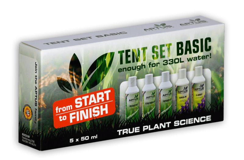 Das Aptus Tent Set Basic ist ein komplettes Starterpaket mit fünf biologischen Top-Produkten von Aptus in praktischen 50 ml Flaschen. Ideal, um das Aptus-Nährstoffprogramm kennenzulernen oder für den Einsatz in kleinen Growzelten und Räumen.