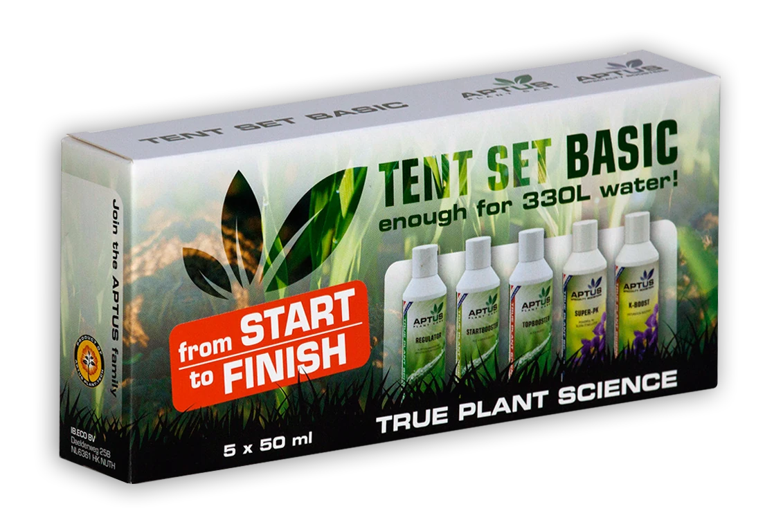 AptusAptus Tent Set Basic (5 x 50 ml) mit 5 Bio-Produkten: Startbooster, Topbooster, Regulator, Super-PK und K-Boost. Komplettset für Wachstum und Blüte.