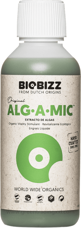 BiobizzBiobizz Alg-A-Mic 250 ml ist ein biologischer Pflanzenbooster aus Meeresalgenextrakt. Reduziert Stress, fördert gesundes Blattwachstum und verbessert die Nährstoffaufnahme. Geeignet für Erde, Kokos und Hydrokultur. 100 % natürlich.