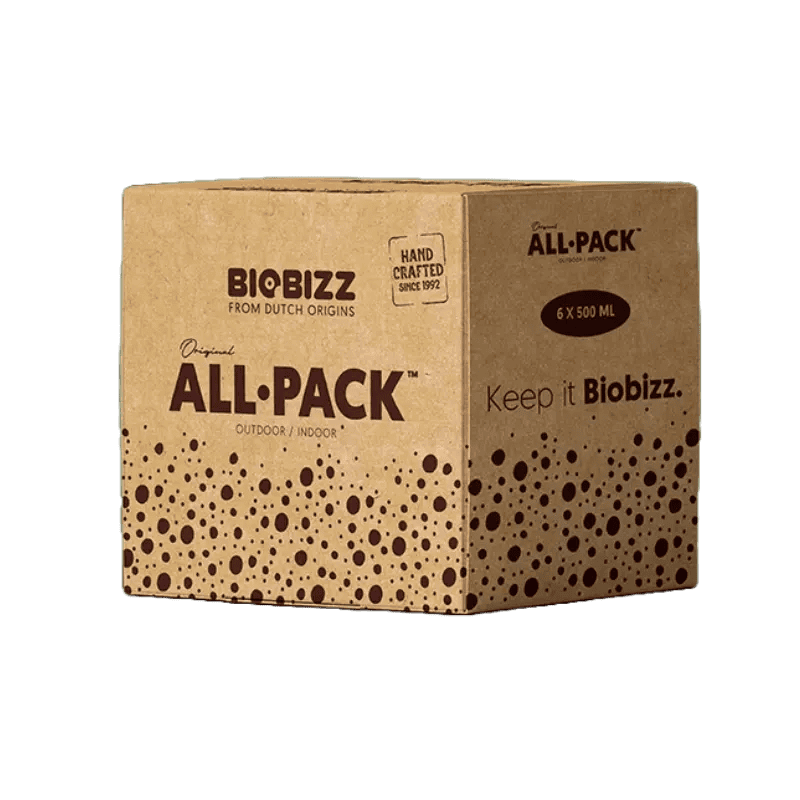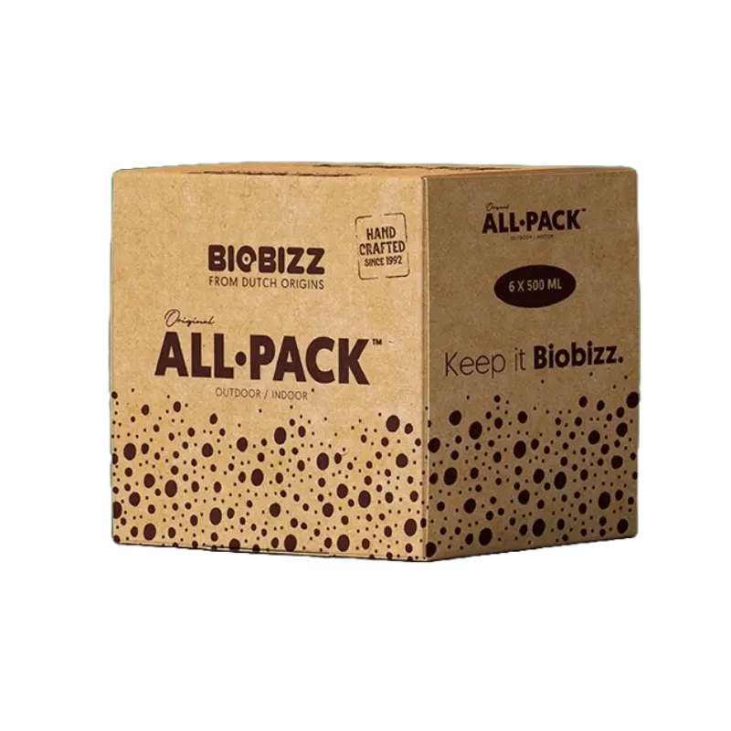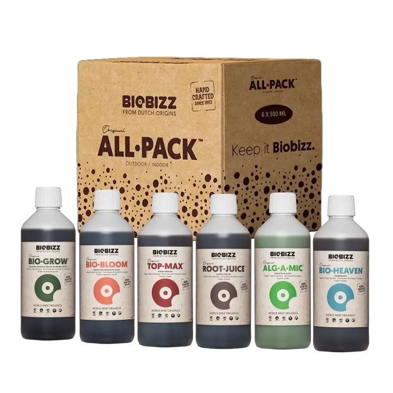 BiobizzDas BioBizz All Pack Indoor 6 x 500 ml ist ein komplettes organisches Düngerset für den Indoor Grow. Enthält 6 perfekt abgestimmte Dünger und Booster für Wachstum, Blüte und Wurzelentwicklung. Ideal für mehrere Durchgänge.