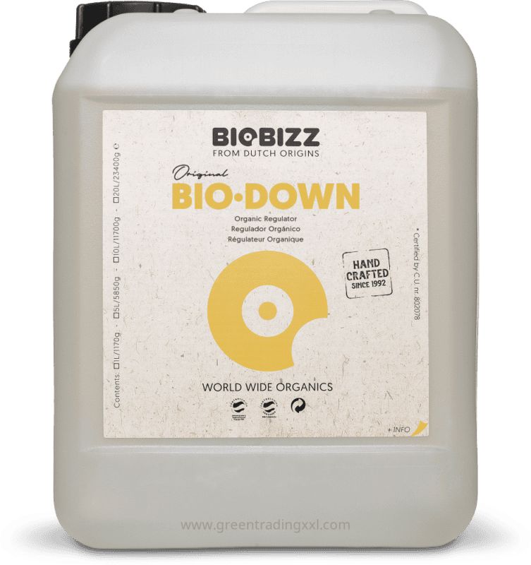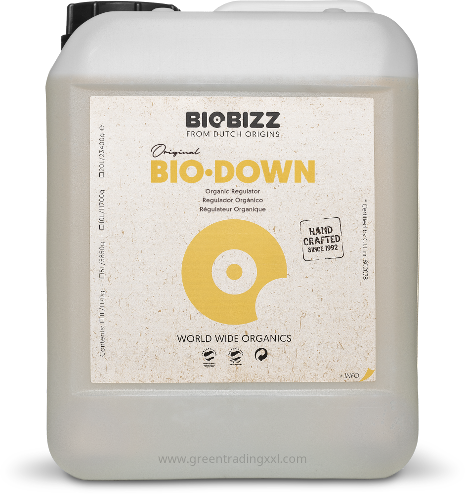 BiobizzBiobizz pH Bio-Down 5 L senkt den pH-Wert biologisch ab. Sorgt für optimale Nährstoffaufnahme, ist sicher für Mikroorganismen und einfach in der Anwendung.