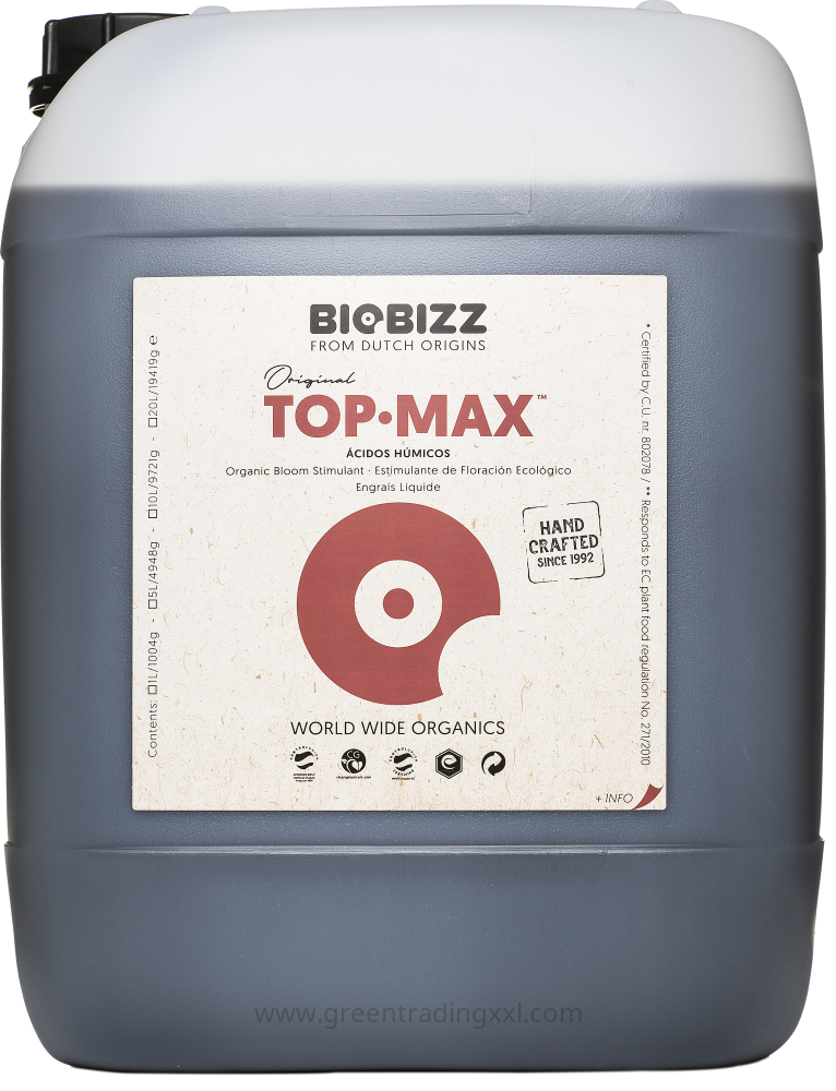 Biobizz Top-Max ist ein 100% organischer Blütenstimulator, der speziell entwickelt wurde, um das Wachstum und die Qualität der Blüten in jeder Phase des Pflanzenzyklus zu verbessern. Top-Max steigert die Zellaktivität und erhöht die Aufnahme von Nährstoffen, was zu größeren, schwereren und geschmackvolleren Blüten führt. Hier sind einige der herausragenden Eigenschaften von Biobizz Top-Max: