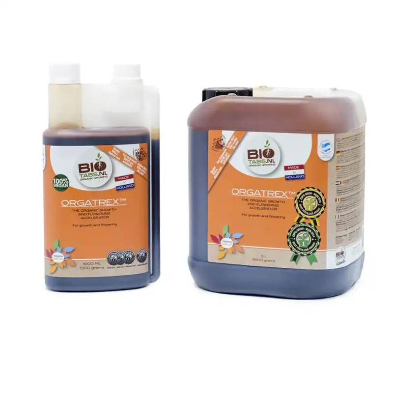 Orgatrex von Biotabs ist ein hochwirksamer, organischer Flüssigdünger, der speziell für alle Pflanzenarten entwickelt wurde. Mit einem Nährstoffverhältnis von N-P-K 5-1-5 unterstützt Orgatrex sowohl das vegetative Wachstum als auch die Blütezeit. Ideal für den Einsatz in der Bio-Anbau- und Blütestrategie sorgt Orgatrex für kräftige Pflanzen und reichhaltige Ernten.
