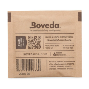 - Platzierung: Legen Sie ein Boveda-Pack in einen gut verschlossenen Behälter mit maximal 28 Gramm Produkt.