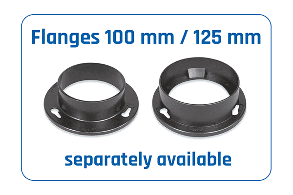 Für 100/125 mm Flansche geeignet (separat erhältlich)
