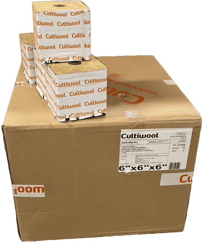CultiwoolCultiwool Big Block 15 x 15 x 14,2 cm mit 38/40 mm Mittel-Loch. Hochwertige Steinwollblöcke für Stecklinge und Jungpflanzen. Optimale Wasser- und Luftverteilung. Verpackt im Karton mit 48 Stück, ideal für professionelle Anlagen.