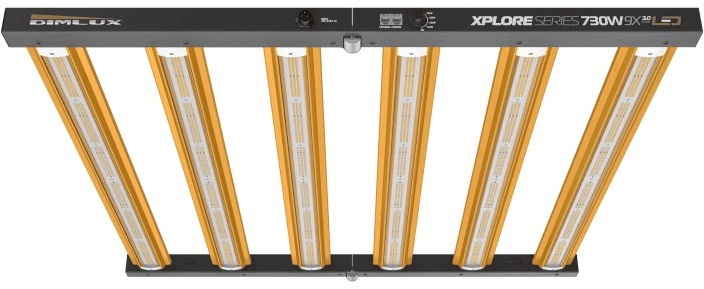 DimluxDimlux Xplore 730W 9X 3.0 LED Pflanzenlampe: 1944 μmol/s Output, 3,0 µmol/J Effizienz. Vollspektrum Weiß & Rot, asymmetrische LEDs für gleichmäßige Verteilung. Ideal für 1×1 m Growzelte.