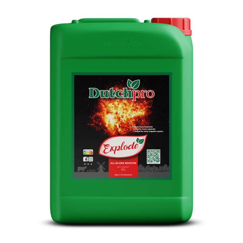 Der DutchPro Explode 10 l ist ein leistungsstarker Blühstimulator, der speziell entwickelt wurde, um die Blütenentwicklung und den Ertrag von Pflanzen zu maximieren. Diese hochwertige Formel enthält eine ausgewogene Mischung aus Phosphor (P) und Kalium (K), ergänzt durch Vitamine, Spurenelemente und Kohlenhydrate. Das Ergebnis ist eine explosive Blüte mit schwereren, kompakteren Blüten und einer verbesserten Widerstandsfähigkeit während der Blühphase.