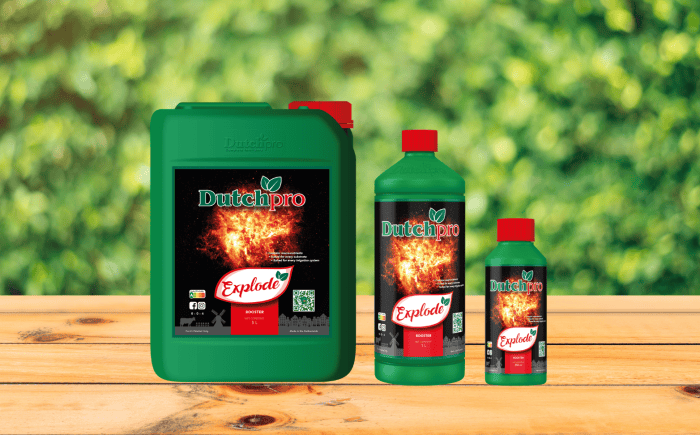 DutchproExplode ist der Blütenverstärker schlechthin, der die in voller Blüte stehende Pflanze mit allen Nährstoffen versorgt, die sie in dieser Phase benötigt.