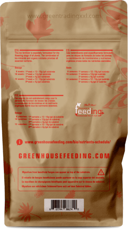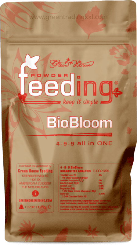 Green House Feeding BioBloom ist ein hochwertiger, vollständig biologischer Dünger, speziell entwickelt für die Blütephase Ihrer Pflanzen. Dieses pulverförmige Düngemittel bietet eine ausgewogene Mischung aus essentiellen Makro- und Mikronährstoffen, um eine optimale Blüten- und Fruchtentwicklung zu gewährleisten. Mit einem NPK-Verhältnis von 4-9-9 (4 % Stickstoff, 9 % Phosphor, 9 % Kalium) versorgt BioBloom Ihre Pflanzen mit allem, was sie für eine gesunde Blüte und reiche Erträge benötigen.
