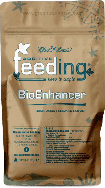 Green House FeedingGreen House Feeding BioEnhancer 125 g ist ein biologischer Pflanzendünger in Pulverform. Fördert Wurzelwachstum, verbessert die Nährstoffaufnahme und Bodengesundheit. Umweltfreundlich und einfach anzuwenden. Ideal für nachhaltige Anbaumethoden.