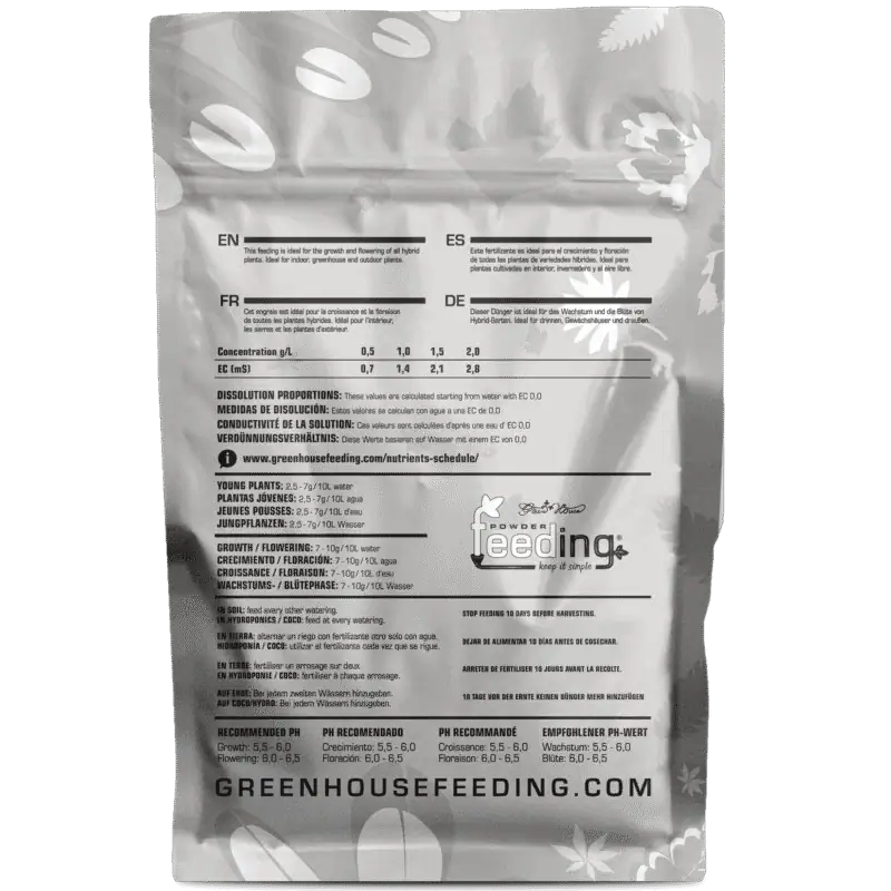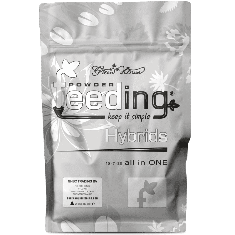 Verwöhnen Sie Ihre hybriden Pflanzen mit Green House Feeding Hybrids 2,5 kg, einem hochwertigen, mineralischen Pulverdünger, der speziell für Pflanzen mit einer Blütezeit von 8 bis 10 Wochen entwickelt wurde. Diese All-in-One-Nahrung ist ideal für Kreuzungen und Hybridsorten und liefert optimale Ergebnisse in jedem Anbaumedium – ob Erde, Kokos, Hydrokultur oder Aeroponik.