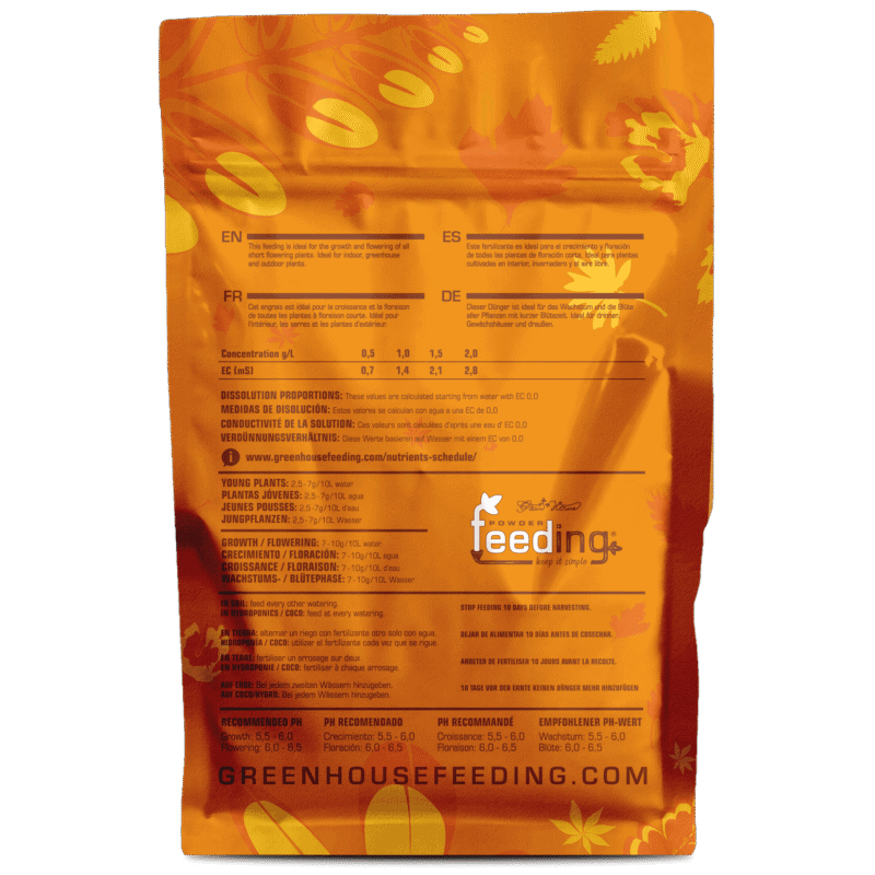 Geben Sie Ihren schnell blühenden Pflanzen den perfekten Nährstoffschub mit Green House Feeding Short Flowering 1 kg, einem hochwertigen mineralischen Dünger, der speziell für Pflanzen mit einer Blütezeit von 8 Wochen oder weniger entwickelt wurde. Diese leistungsstarke Pulverformel (NPK 16-6-26 + Mg) liefert eine optimal ausbalancierte Mischung aus Nährstoffen, reich an sofort verfügbarem Kalium, um eine explosive Blüten- und Fruchtbildung zu fördern. Ideal für Grower, die höchste Qualität und Benutzerfreundlichkeit kombinieren möchten!