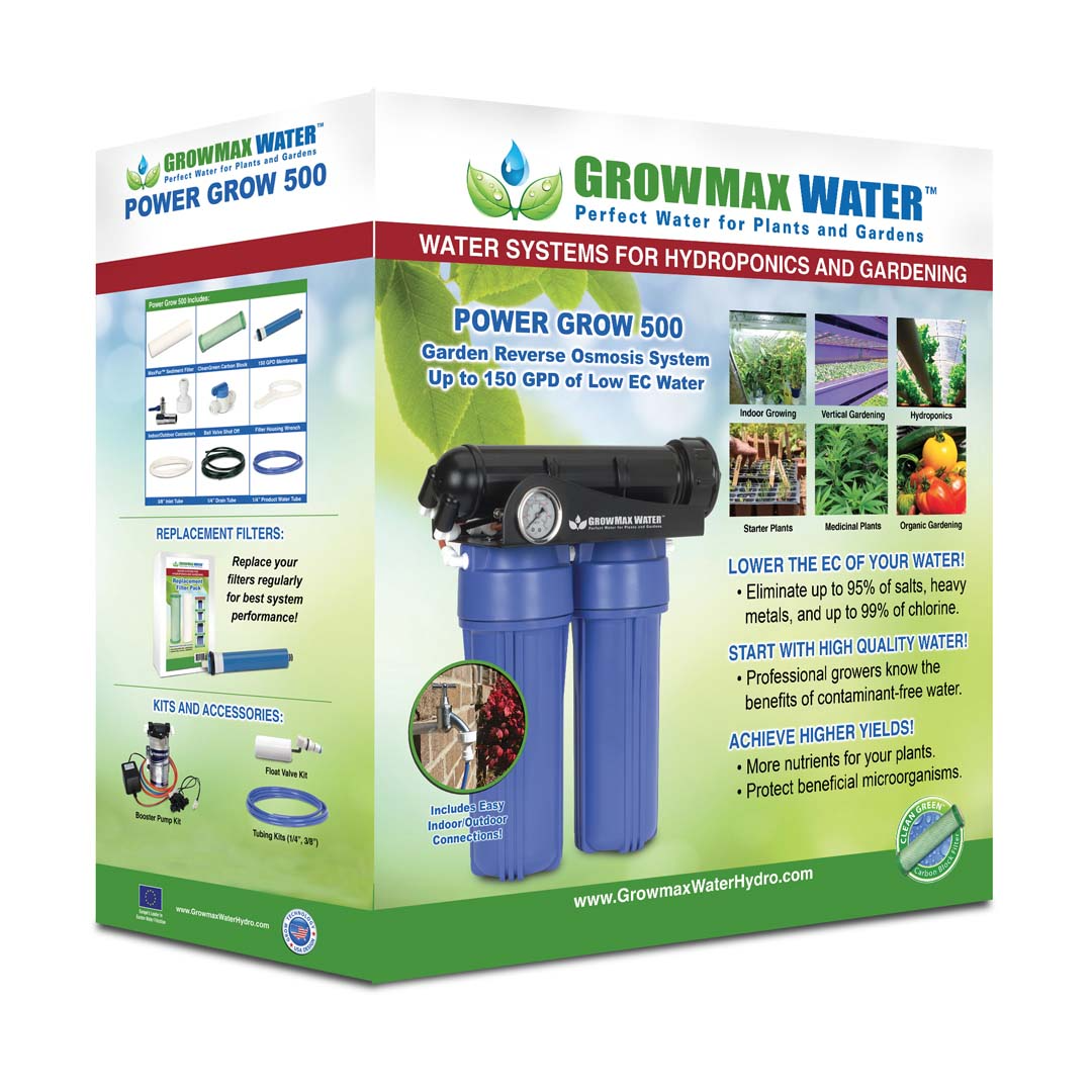 GrowMax WaterDas GrowMax Water Power Grow 500 Umkehrosmose System produziert bis zu 500 L reines Wasser pro Tag. Entfernt bis zu 95 % Salze und 99 % Chlor. Ideal für Gartenbau, Hydroponik, Hobbyanbau und Urban Gardening – für gesunde Pflanzen und starkes Wachstum.