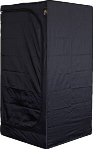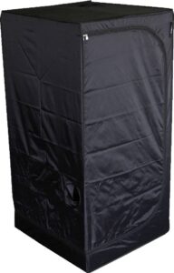 Das Zelt ist mit verschiedenen Öffnungen und Ein- und Auslässen ausgestattet, darunter ein 76 Millimeter Kabelanschluss, ein 152 Millimeter Einlass und ein 152 Millimeter Auslass, die Ihnen Flexibilität beim Anschließen Ihrer Anbauausrüstung bieten. Die solide Stahlrahmenkonstruktion zusammen mit der Polypropylen-Copolymer-Wasserwanne bietet Stabilität und Schutz für Ihre Pflanzen.