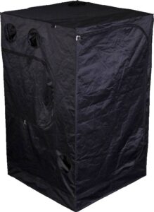 Mit einer Größe von 120x120x200 cm gehört das Mammoth Pro+ 120 in die Kategorie der mittelgroßen Growzelte. Es bietet ausreichend Platz für mehrere Pflanzentöpfe und Anbaugeräte. Obwohl es ein geräumiges Zelt ist, passt dennoch nur eine Lampe hinein, was es effizient und platzsparend für mittelgroße Züchter macht, die maximale Erträge anstreben.