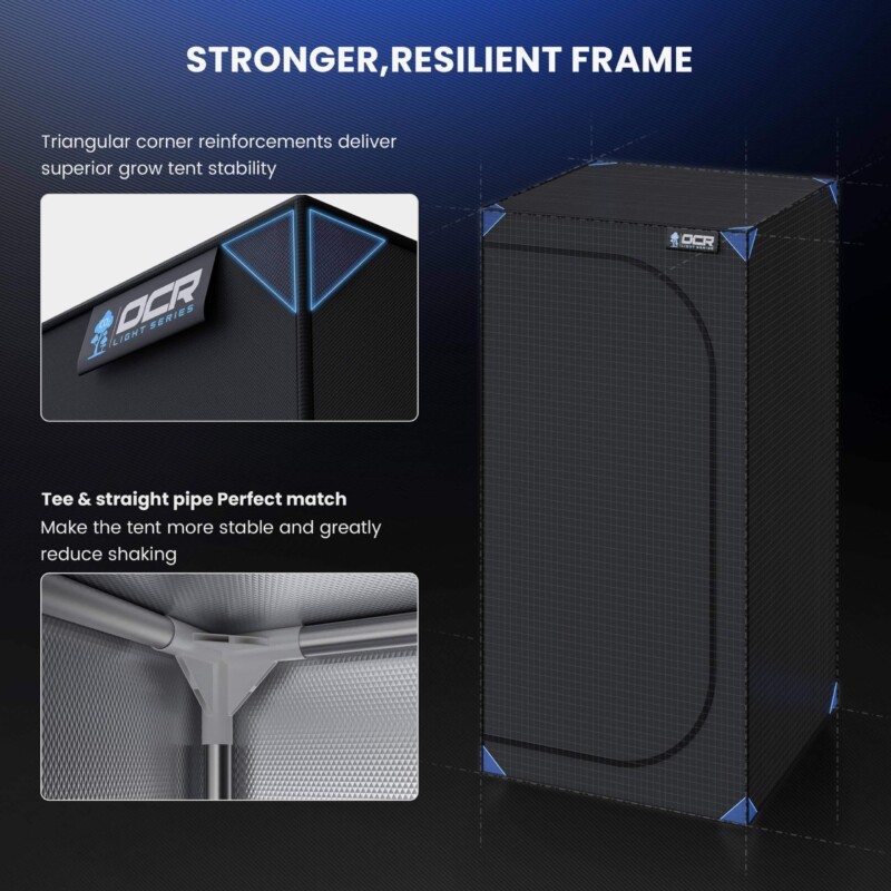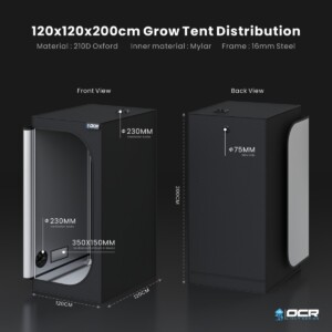 OCRDie OCR Light 120 Growbox von 120x120x200 cm ist ein geräumiges Einsteiger-Growzelt mit 16 mm Rahmen und 210D Mylar-Innenbeschichtung. Perfekt für mittelgroße LED-Setups und effizienten Indoor-Anbau auf 1,44 m² ohne hohe Investition.