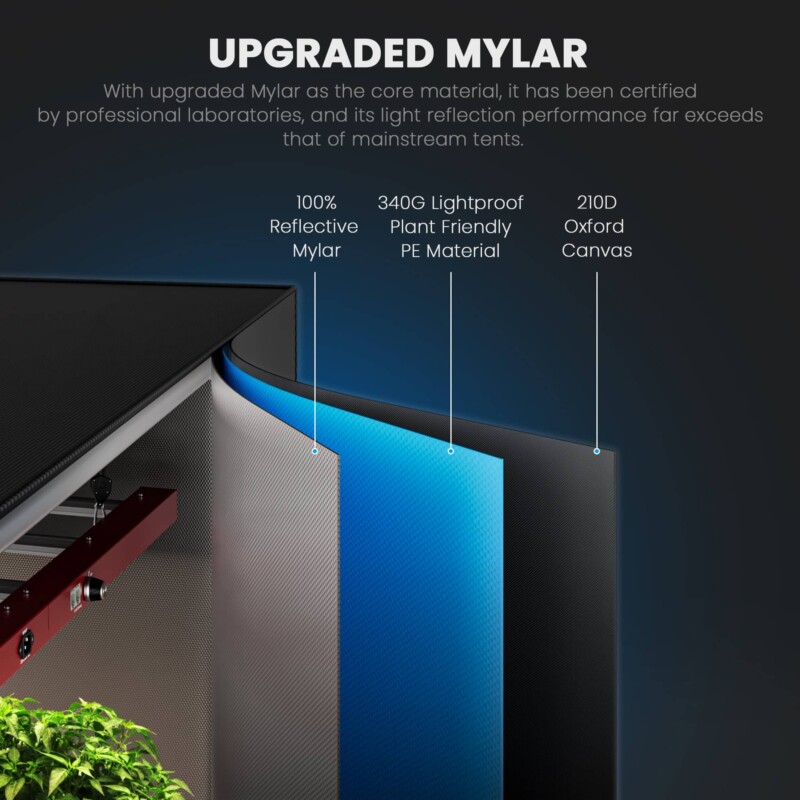 Mit einer Grundfläche von 1,44 m² und einer Höhe von 180 cm ist dieses Zelt ideal für verschiedenste Anbauprojekte im Hobbyraum oder an anderen Indoor-Standorten.