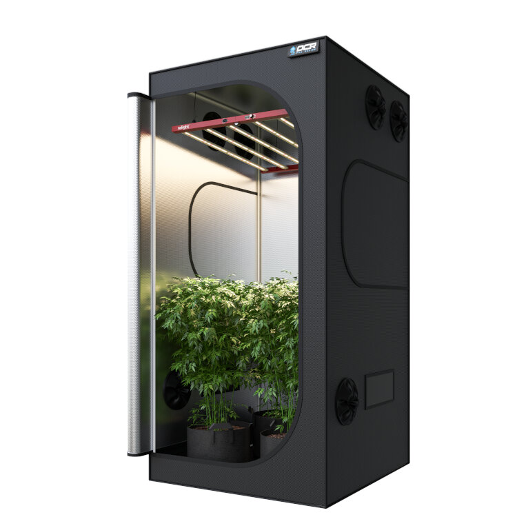 OCRDie OCR Pro 150 Growbox von 150x150x200 cm ist ein geräumiges Profi-Growzelt mit robustem 22 mm Rahmen und langlebigem 600D Mylar-Gewebe. Ideal für leistungsstarke LED-Installationen, größere Setups und maximale Kontrolle über Klima und Licht.