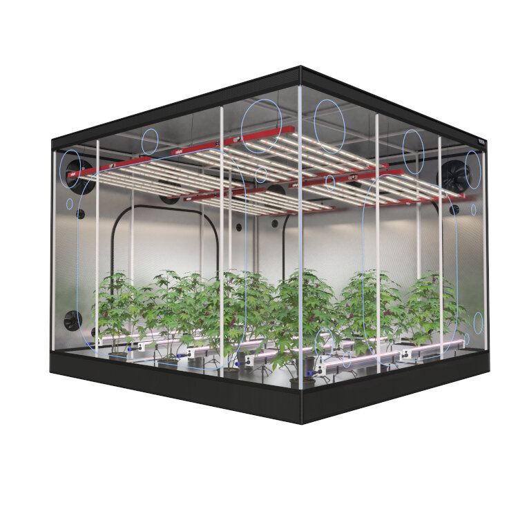 Dank des geräumigen Formats kannst du effizient mit mehreren Lichtquellen und optimaler Luftzirkulation arbeiten.
