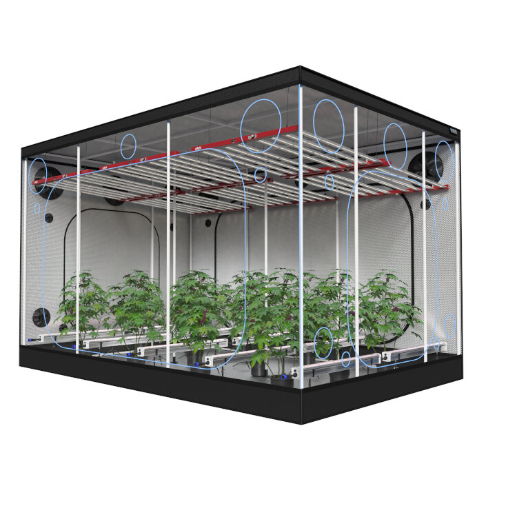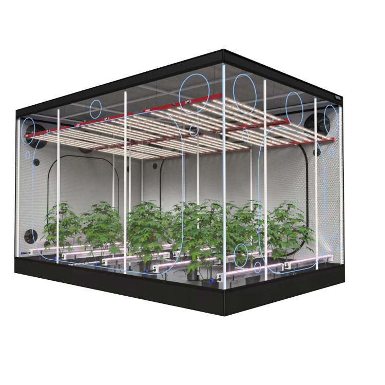 Die OCR XXL Premium 360 Growbox von 240x360x225 cm wurde für professionelle Grower entwickelt, die keine Kompromisse bei Qualität, Stabilität und Tragfähigkeit eingehen wollen. Dies ist ein High-End-Growzelt für große Projekte, schwere LED-Installationen und intensiven Gebrauch.